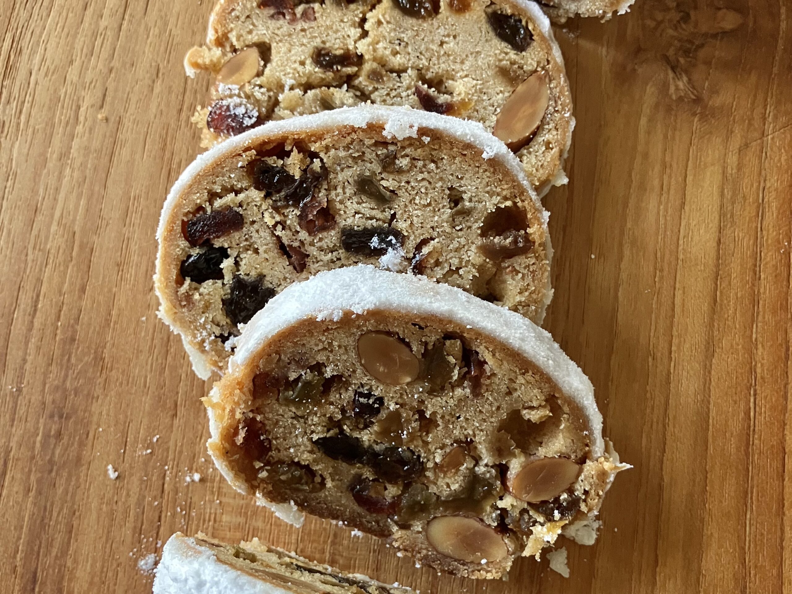 今年は、お店のご近所の農家さんが育てたブドウやイチジクもたくさん入り、ローカル度高めなシュトレンになりました。